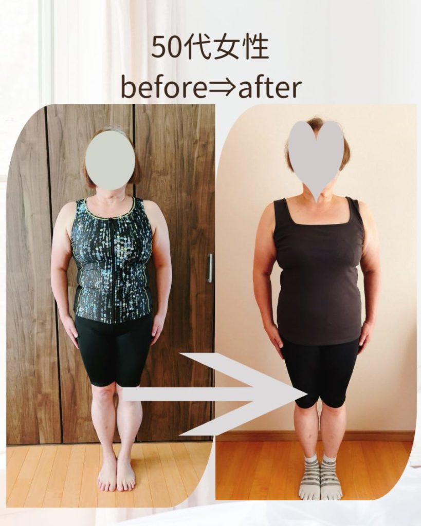 学びを実践するうちに、それまで自己流では落ちなかった体重が、知識が入る事で1年で8~9㎏減り、しかもリバウンドなし。